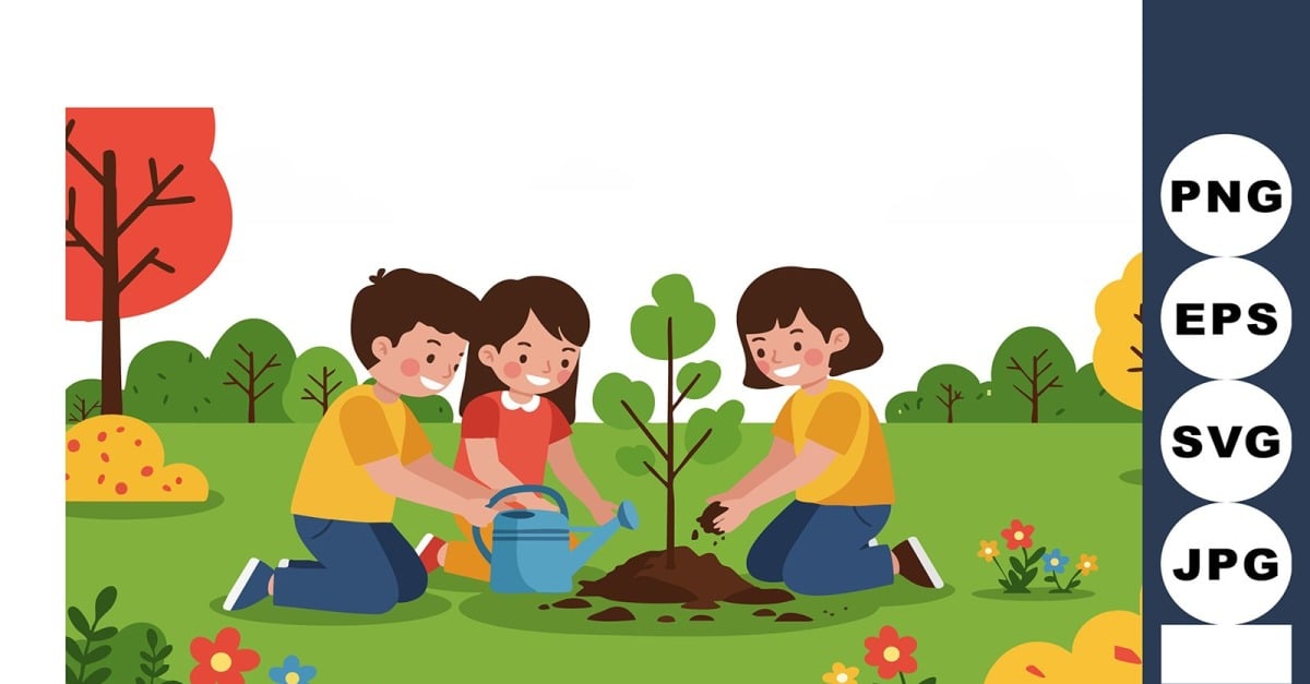 ### Children Planting Tree Outdoors in Autumn Park Environment Vector Illustration Capture the essence of joyful learning and nature conservation with our “Children Planting Tree Outdoors in Autumn Park Environment Vector Illustration.” This vibrant vector illustration showcases an idyllic autumn scene where children enthusiastically engage in planting trees, embodying the …