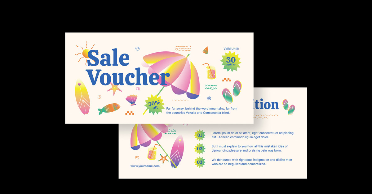 This voucher template is a shortcut to make your work faster. Completed with code, serial number, and another useful description. Suit for any project and many type of business. Featues 8.5″ x 4″ CMYK ColorBleed 0.125″ each sidePrint ReadyUsing Free FontsClean and Professional2 Ai Files2 EPS Files2 PSD Files