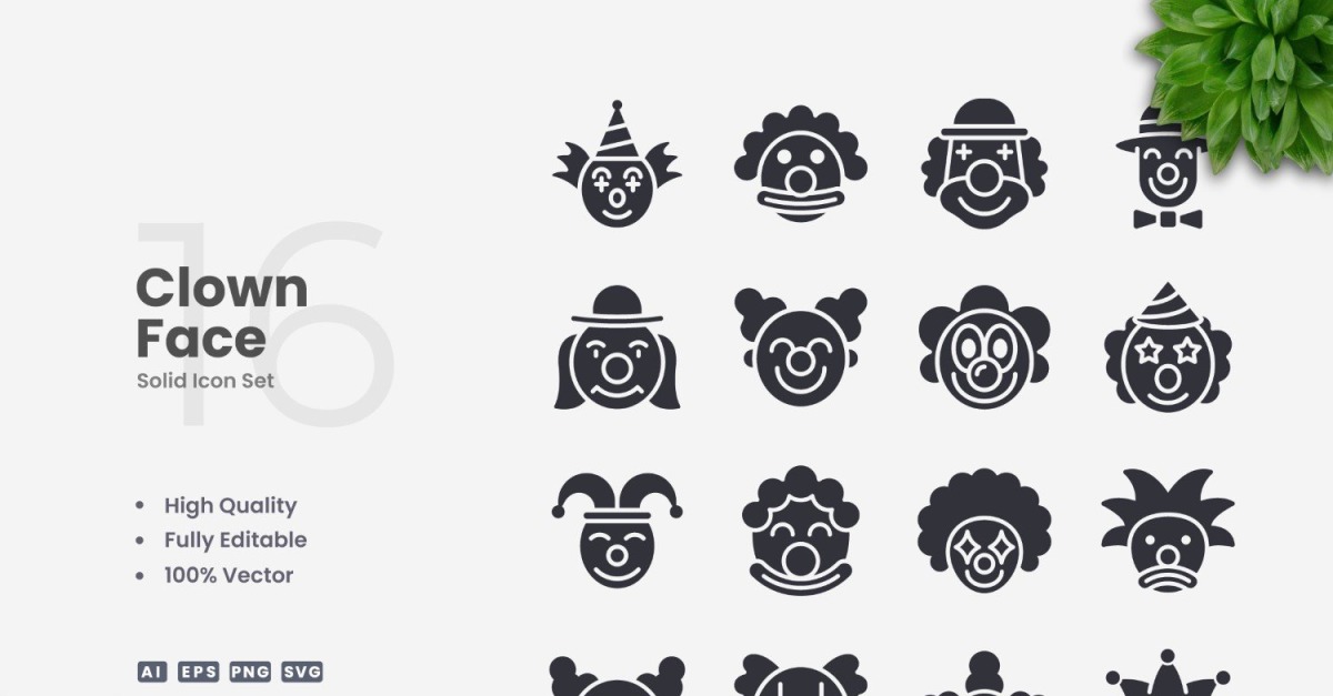 Set of 16 Clown Face Solid Icons | Simple and clean design, perfect for websites, mobile apps, books, social media, infographics, flyer, print, banners, posters and many more. To resize or change color you can easily edit on vector software like Adobe Illustrator and CorelDRAW. Features : High Quality Design100% Vector100% …