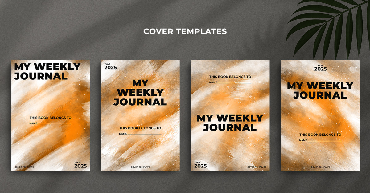 This Weekly Journal Editable Cover Template Set features a minimal layout with an elegant dark orange watercolor brush effect, giving your project a refined and modern aesthetic. Designed in A4 format, it’s perfect for businesses, graphic designers, KDP low content publishers, and printing services. Use these covers for weekly journals, …