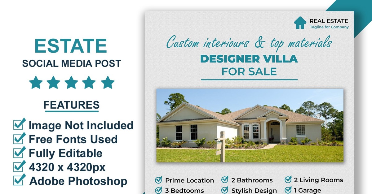 Real Estate Instagram Template for Realtor Campaigns and Property Listings PSD Perfect for real estate campaigns, this Instagram-ready template helps agents showcase properties with clean and compelling design. 4320x4320px standard size300 DPI qualityIncludes Smart Object image layersFree fonts usedFully editable PSD Instagram real estate post template for realtor campaigns, property …