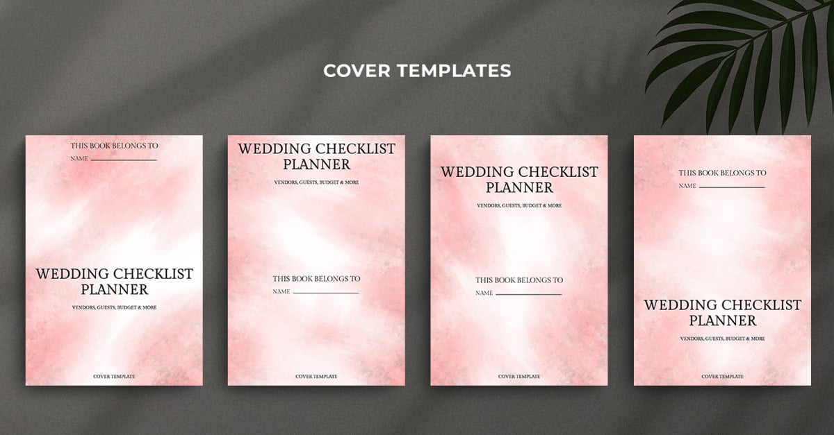 This Wedding Checklist Planner Cover Template features a soft pastel pink abstract watercolor brushed effect, combined with a minimal and modern layout. It’s perfect for designers, KDP low-content publishers, printing companies, and stationery creators looking to craft elegant wedding planners or checklists for brides, grooms, and event organizers. Fully editable …