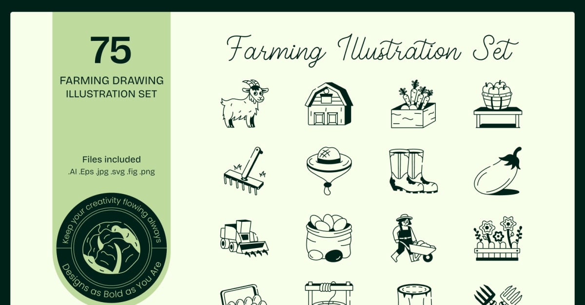 Bring your agricultural-themed projects to life with this versatile Farming Drawing Illustration Set! Designed with usability in mind, this pack is perfect for everything from web design and branding to packaging, educational content, and print materials. Whether you’re creating infographics, signage for markets, organic product labels, or gardening guides, these …