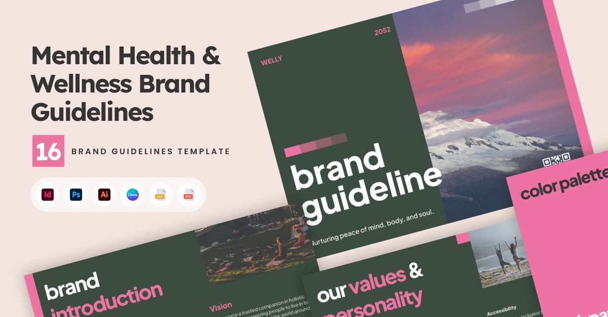 Create a brand identity that inspires trust and positivity with this wellness brand guideline template. Featuring soothing colors, organic layouts, and friendly illustrations, it’s crafted to reflect balance and inclusivity making your brand resonate with audiences in the healthcare, wellness, or psychology fields. Ideal for creative professionals and marketers, this …